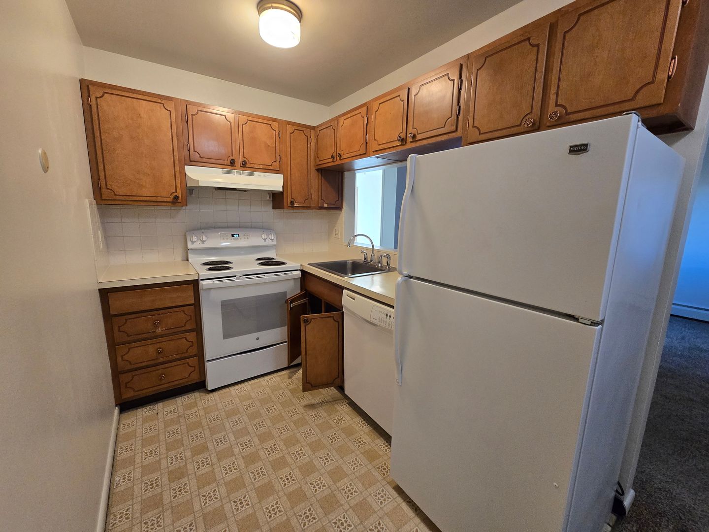 Spacious one bedroom, one bath apartment with an open concept between the living room, breakfast nook, and kitchen. The kitchen features an electric range, dishwasher, and a little cut out that looks out to the living room. There's a small hallway in the back of the unit, leading to the full bathroom, 2 hall closets, and the bedroom. The bedroom includes a sliding glass door to your own private West facing deck with additional outdoor storage and a view of the mountains. On-site coin operated laundry on the ground floor, same room as the mailboxes. Elevator on site. 1 Assigned parking space. Walking distance to bus stops, North Boulder Park, Pearl Street Mall and more!