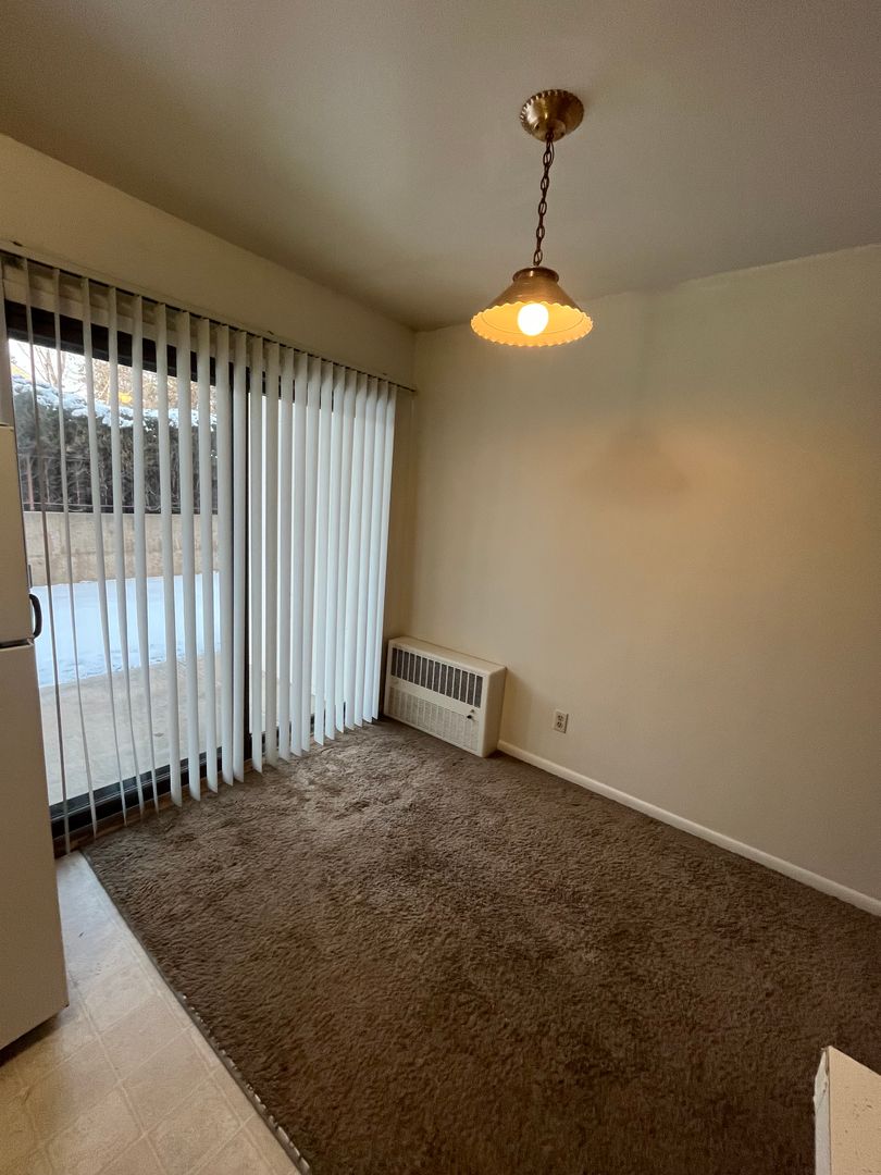 This first floor one bedroom apartment features an open floorplan throughout the living and dining room. Short hallway off living room includes a oversized storage closet, and access to the bedroom and bathroom. The breakfast nook has a sliding glass door that opens out to your private patio with additional outdoor storage, and the shared grassy courtyard area. Locked coin operated laundry/mail room shared between all tenants. 1 Assigned parking space behind the building. Walking distance to bus stops, North Boulder Park, Pearl Street Mall and more!