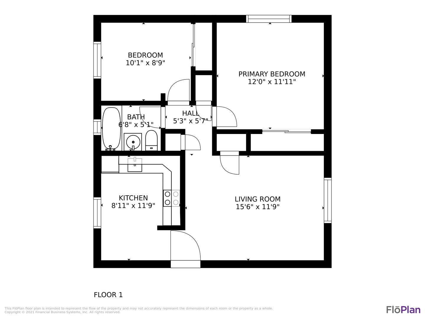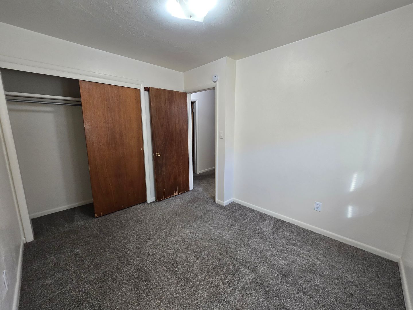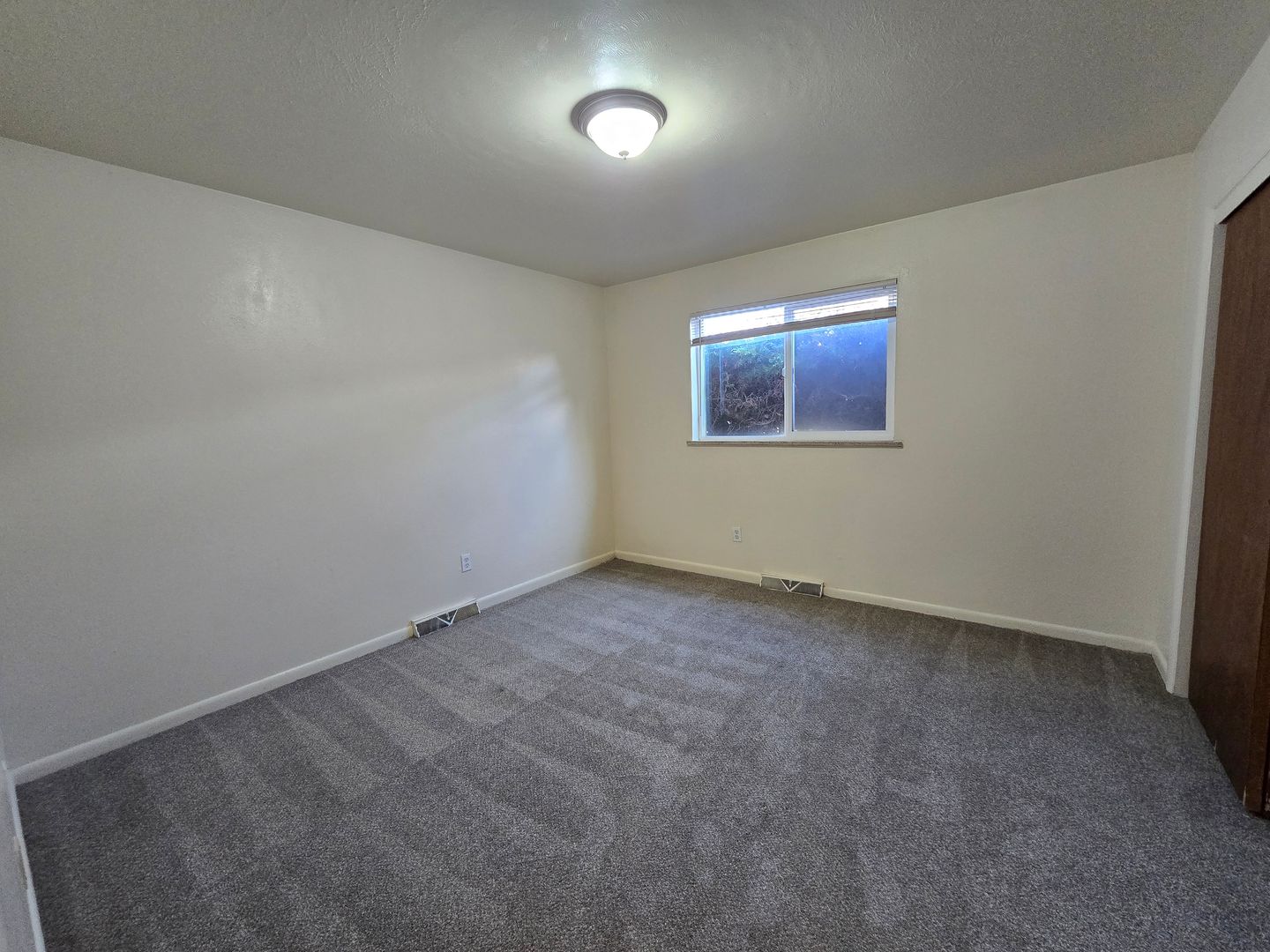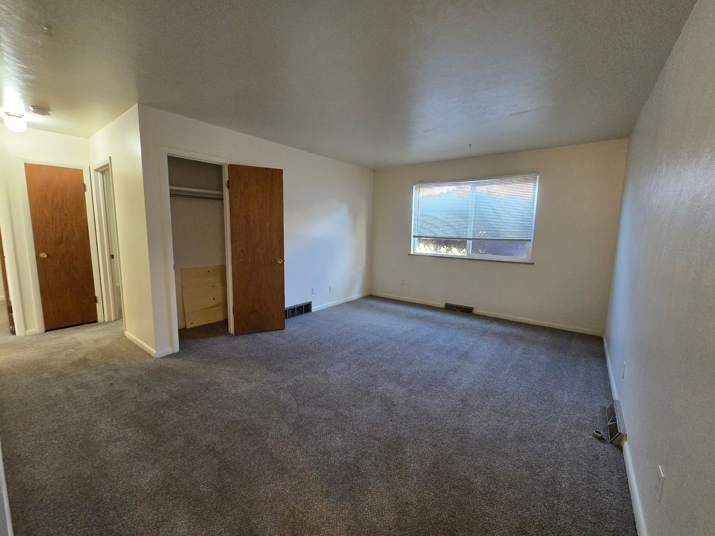 This ground level apartment features carpet throughout and large newer windows. The kitchen is secluded from the rest of the apartment, and includes an electric range, vinyl flooring, and wood cabinetry. The larger bedroom will be to the right of the hallway, with the smaller bedroom and full bathroom to the left. On-site coin operated laundry and off street parking available.